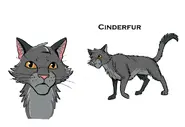 Škvára (Cinderfur) je zjizvený šedý kocour s oranžovýma očima.