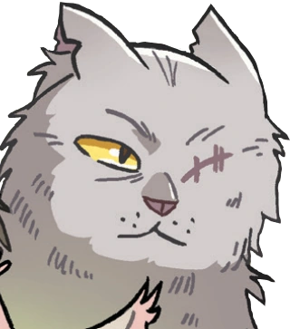 Jednoočka (One-eye) je světle šedá kočka s jedním okem.