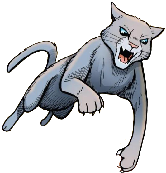Kameňák (Stonefur) je šedomodrý kocour se zjizvenýma ušima a modrýma očima.
