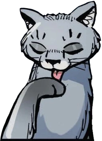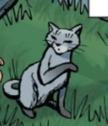 Popílka (Ashfoot) je širokolícná šedá kočka s modrýma očima.