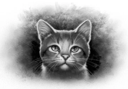 Skvrnouška (Dapplenose) je flekatá šedá kočka s modrýma očima.